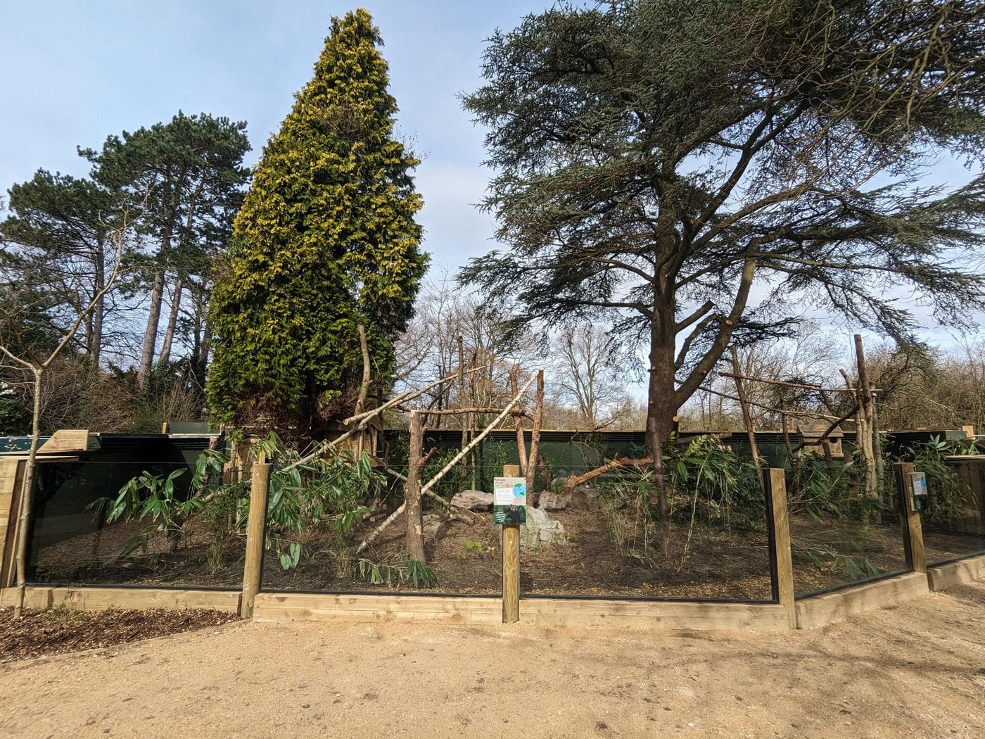 The red panda habitat at Bristol Zoo Project is dominated by the large cedar and conifer trees, which red pandas love to climb!