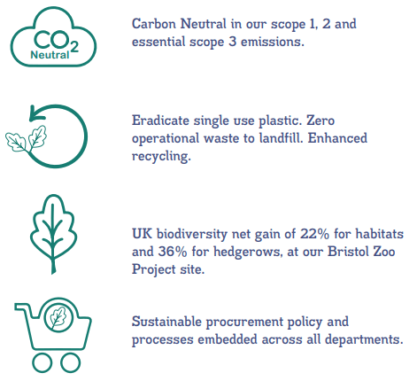 At Bristol Zoological Society we have a comprehensive set of sustainability ambitions and targets. Please read our sustainability strategy to learn more.